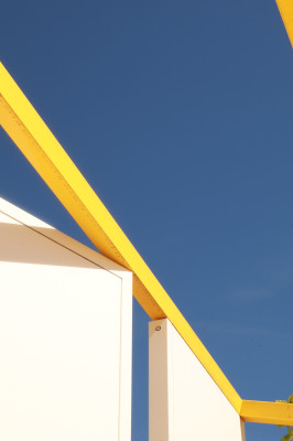 Jack Fleming est un photographe britannique qui a complètement réinventé la photo d'architecture. Là où les autres photographient des buildings, lui crée des compositions minimalistes qui flirtent avec l'abstraction. Une poutre métallique devient une ligne qui traverse le cadre, un angle de façade se transforme en triangle parfait sur fond de ciel bleu, des fenêtres alignées deviennent un motif graphique.